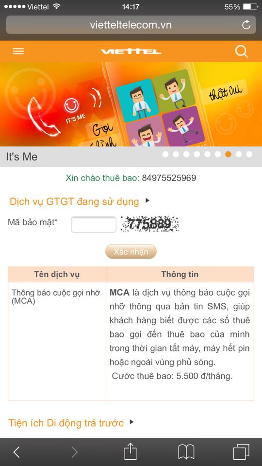 + Cách 2: Tra cứu và thao tác trên website chính thức của Viettel Telecom:
