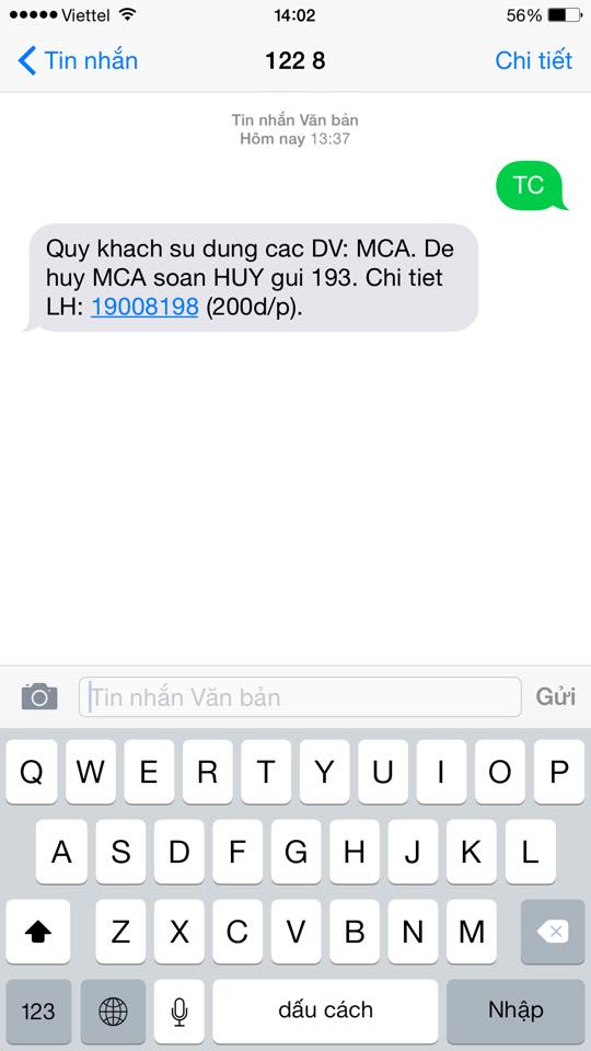 Để tra cứu danh sách các dịch vụ giá trị gia tăng mình đang sử dụng, người dùng sim Viettel chỉ cần soạn tin nhắn TC và gửi đến đầu số kiểm tra 1228. Trong vòng vài giây đồng hồ, Viettel sẽ trả lại kết quả gồm những dịch vụ GTGT mà thuê bao đó đang sử dụng, kèm theo hướng dẫn để khách hàng hủy dịch vụ nào không còn cần thiết.