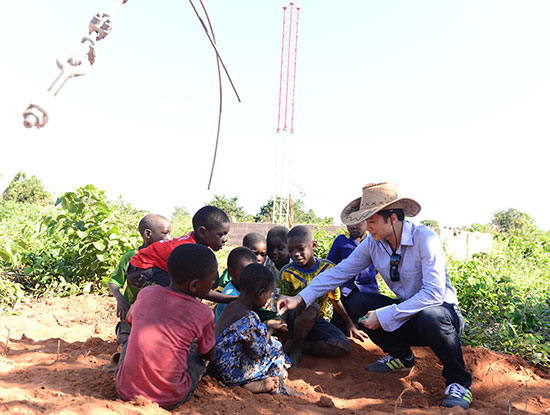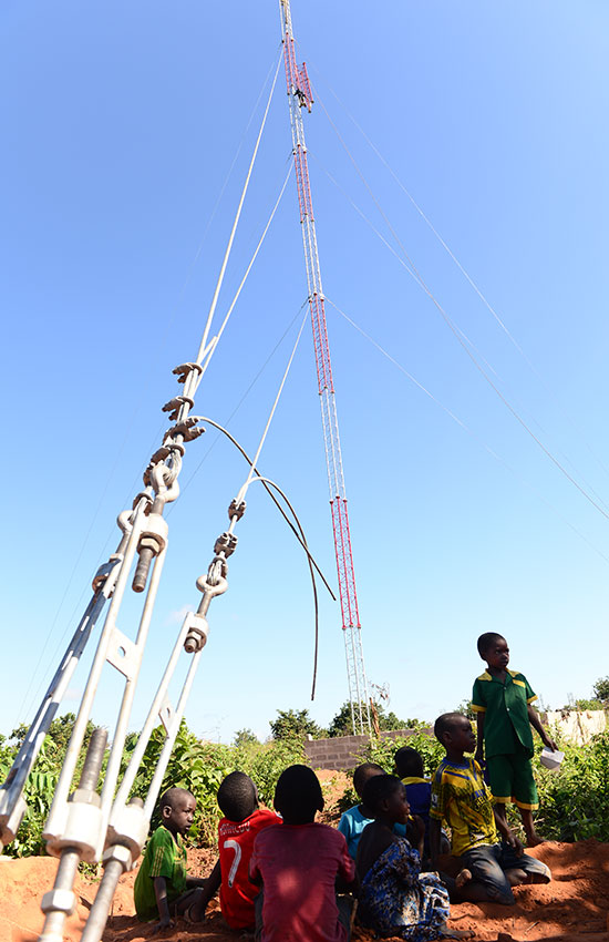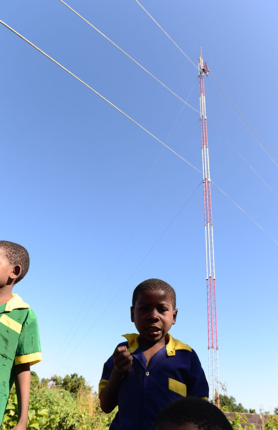 Nhiều đứa trẻ trong ngôi làng hiếu kỳ vì lần đầu tiên nhìn thấy trạm thu phát sóng.