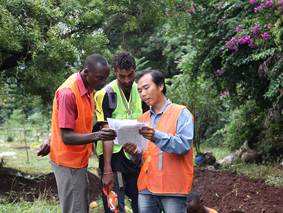 Các cán bộ Viettel hướng dẫn nhân viên Viettel là người bản địa triển khai hạ tầng viễn thông