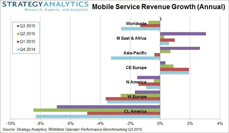 Revenue of telecoms in Central and Latin America fell 6.9 percent – recording the biggest revenue declines in Q3.